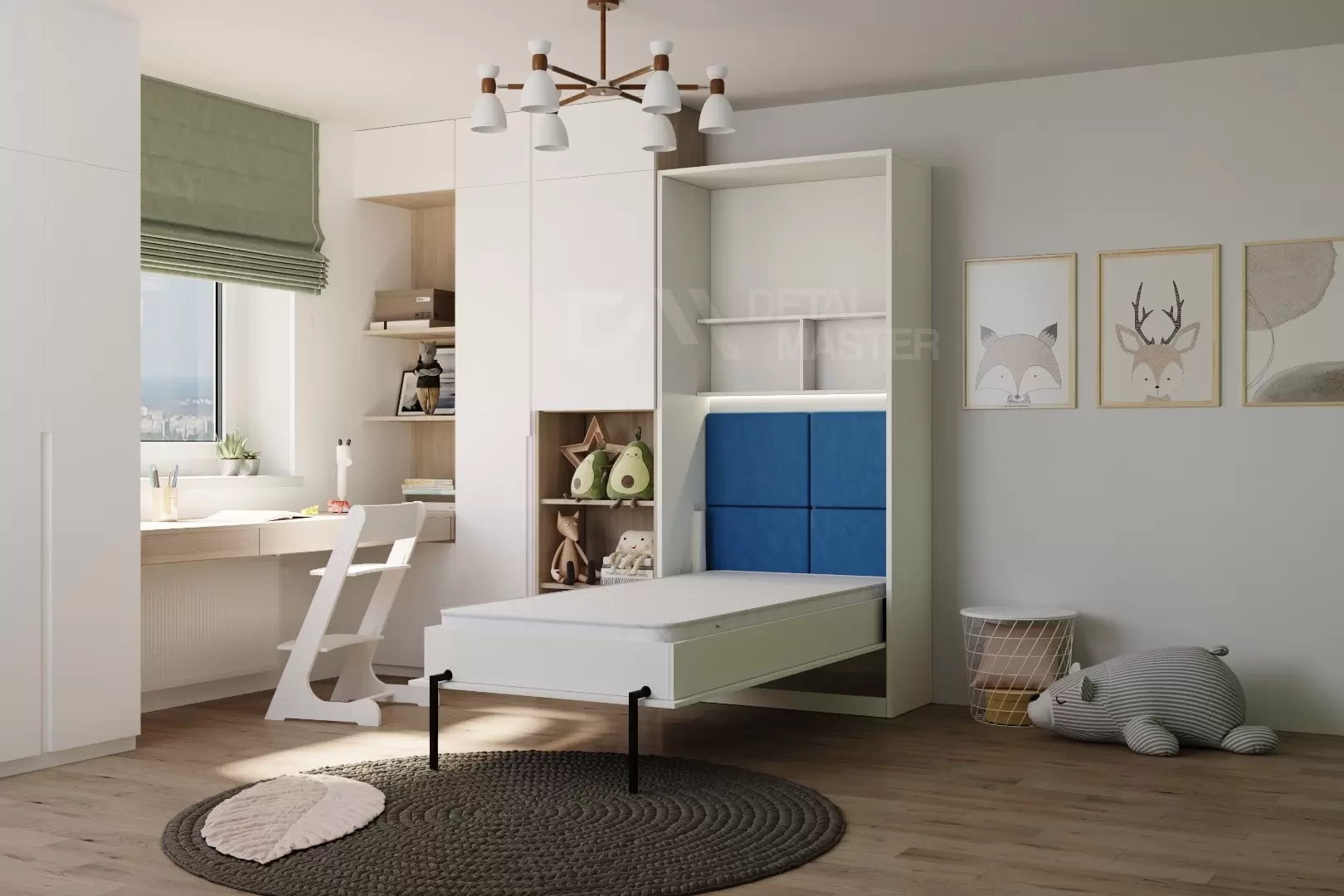 Детская шкаф-кровать "Flip Bed Start" работает на механизме раскладывания собственной разработки "Start". Кровать раскладывается легким движением руки, превращаясь в полноценное спальное место. Просто потяните ее за ручки, расположенные на фасаде и выставите ножки-опоры.
